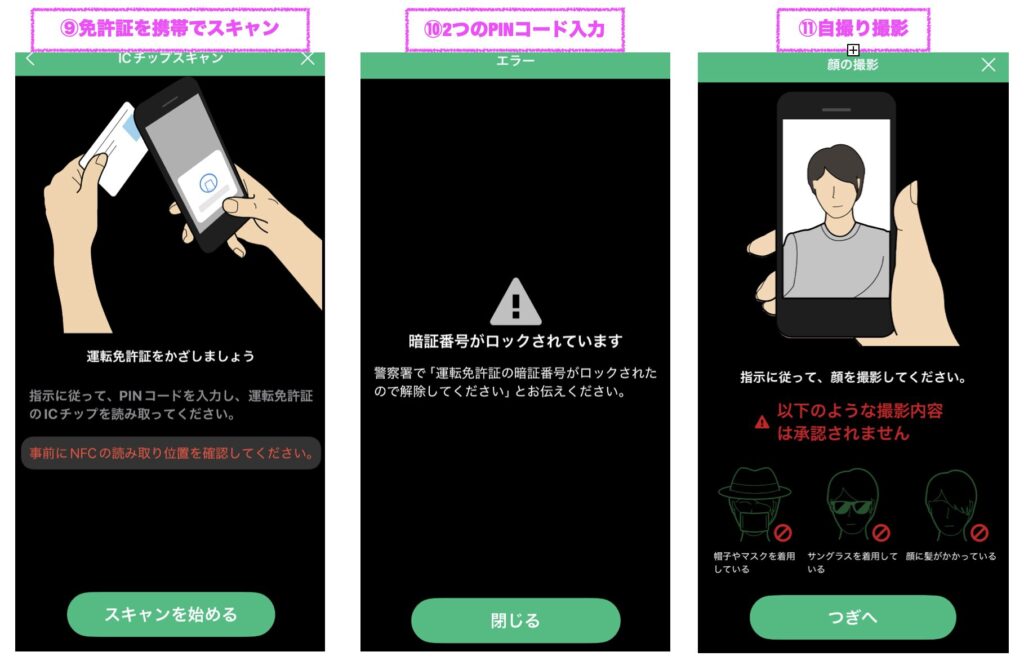 ⑨免許証を携帯でスキャン