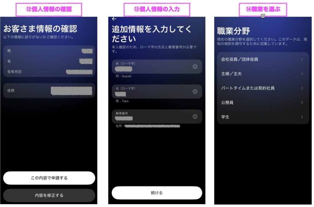 ⑬ローマ字で名前入力と郵便番号を入力