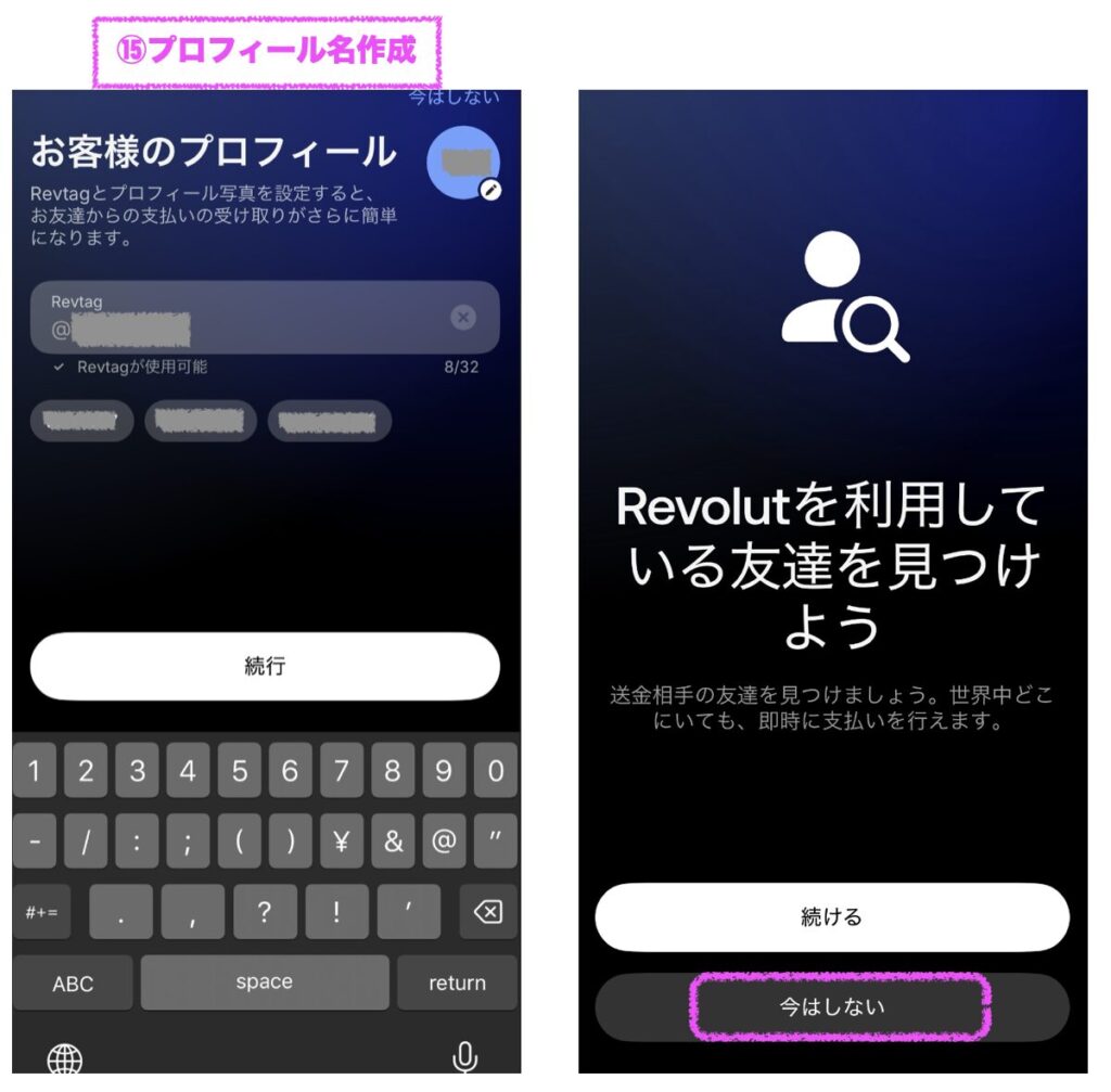 ⑮プロフィール名の作成