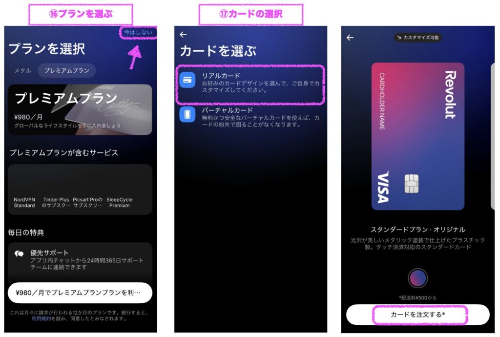 3つのステップで実際に海外でRevolutを利用する為のカードを作成する事ができます