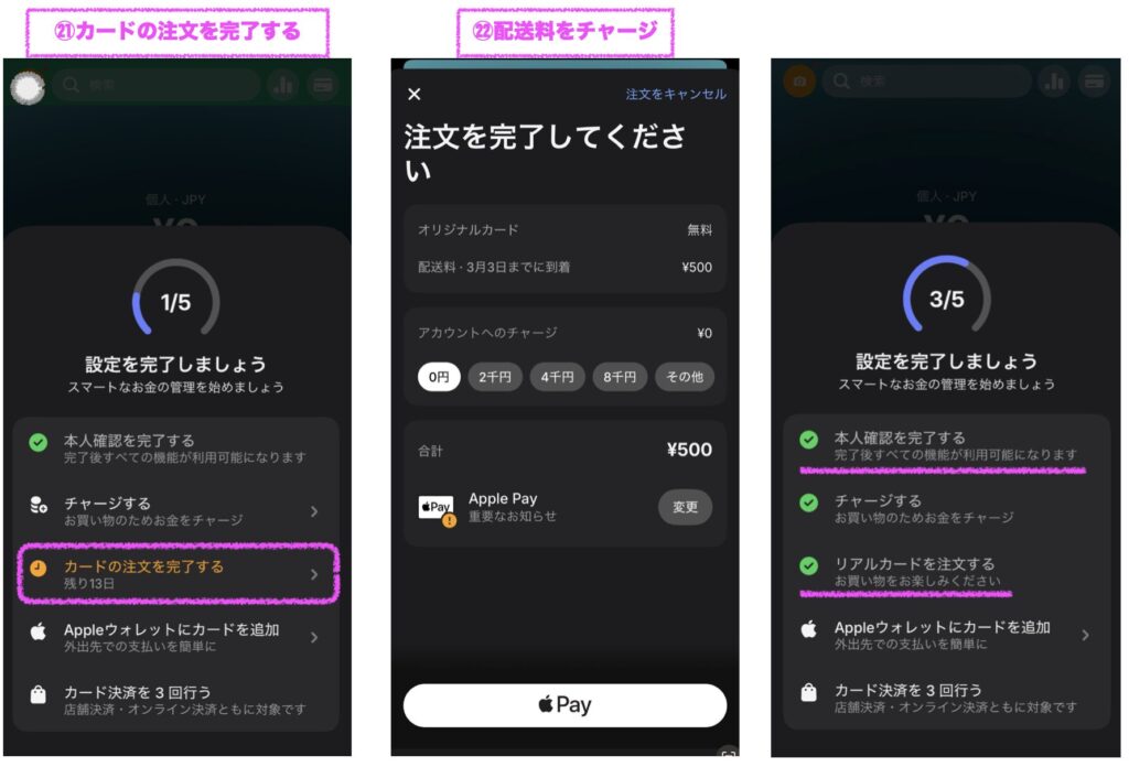 ㉑カードの注文を完了するをクリック